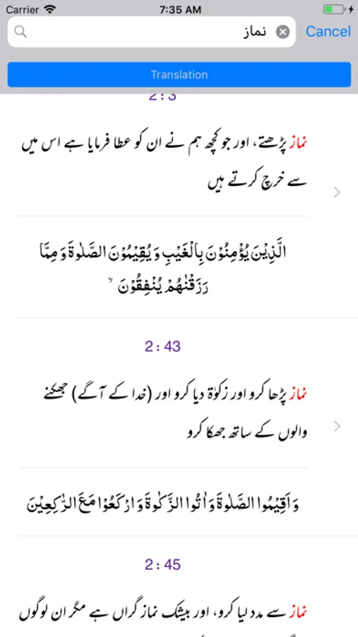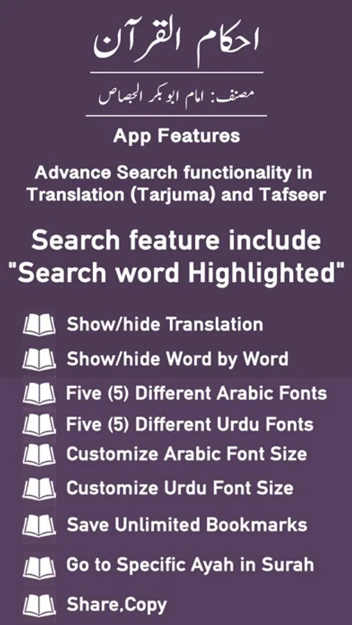 - Ability to show/hide Word by Word, Quran Translation (Tarjuma)