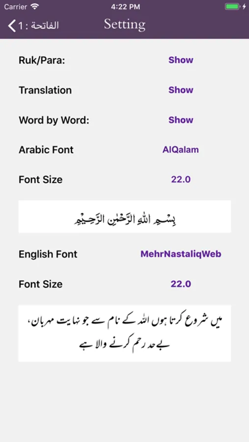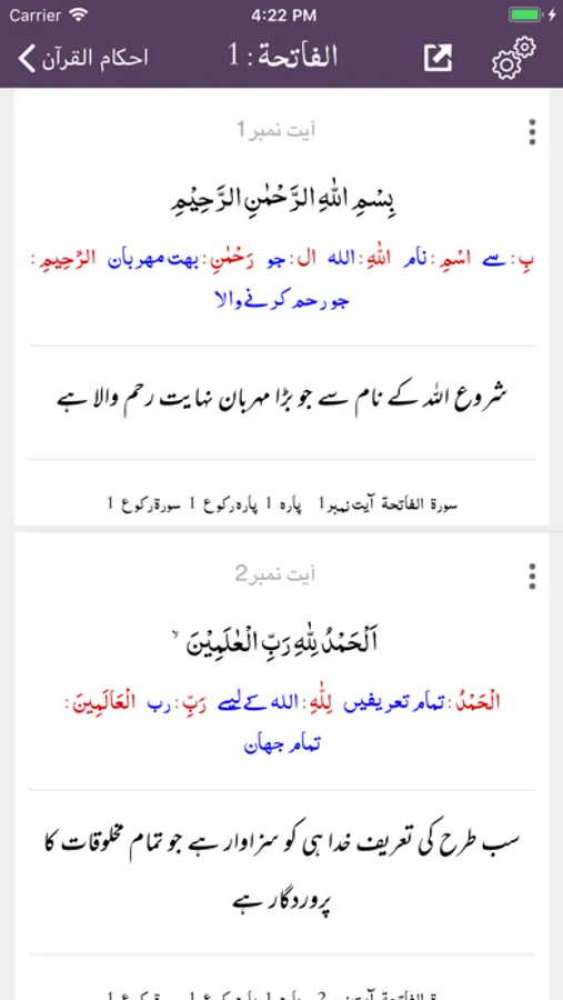 - View Ruku and Para information for every Ayah