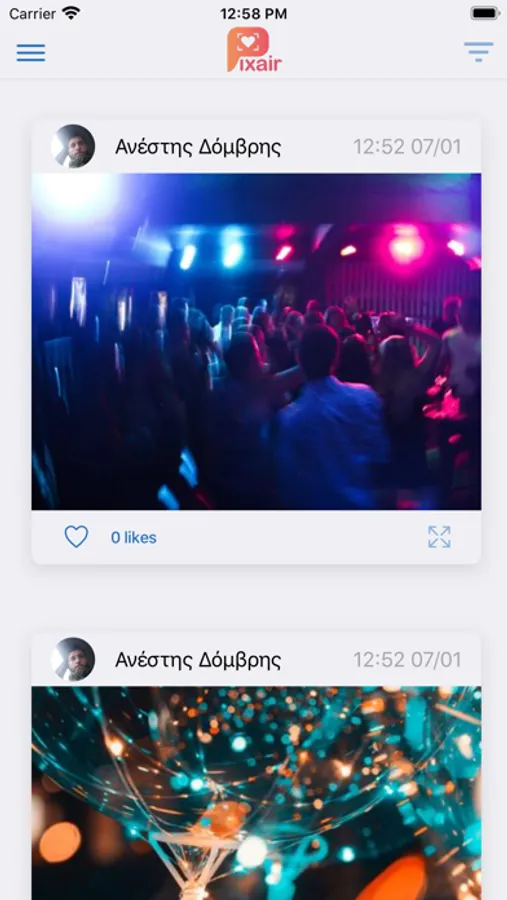 In Pixair you are able to create your own events and share photos with your participants. Share your event code and participants will be able to join your event.