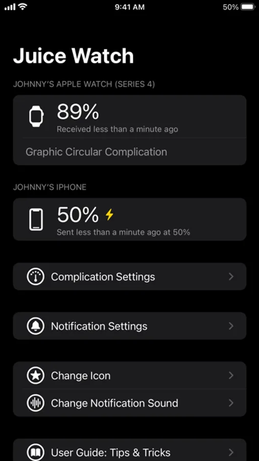 Note: The Juice Watch complication must be installed on your active watch face for the app to work as expected.