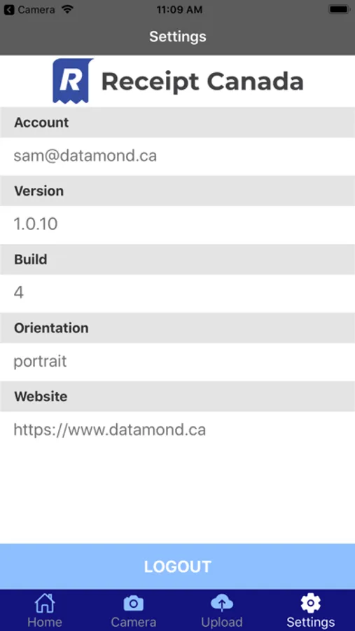 Questions about our app? Send them an email at service@receiptcanada.ca