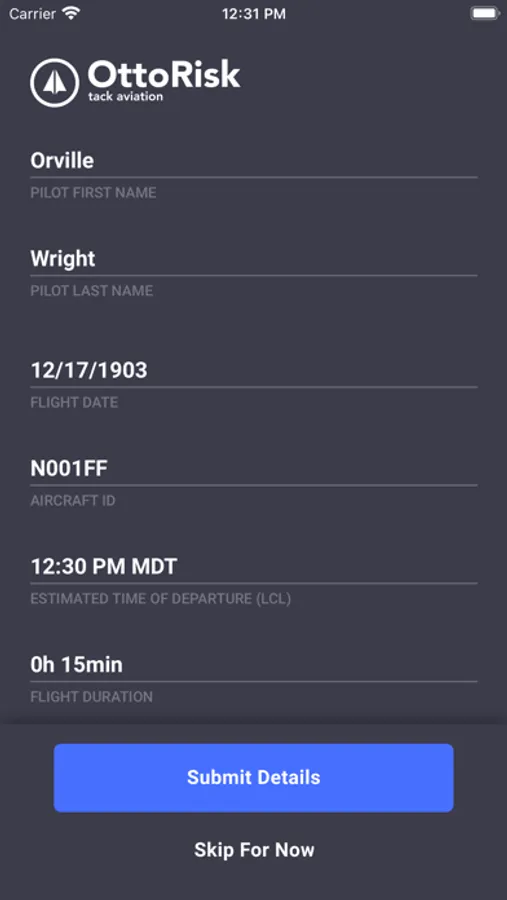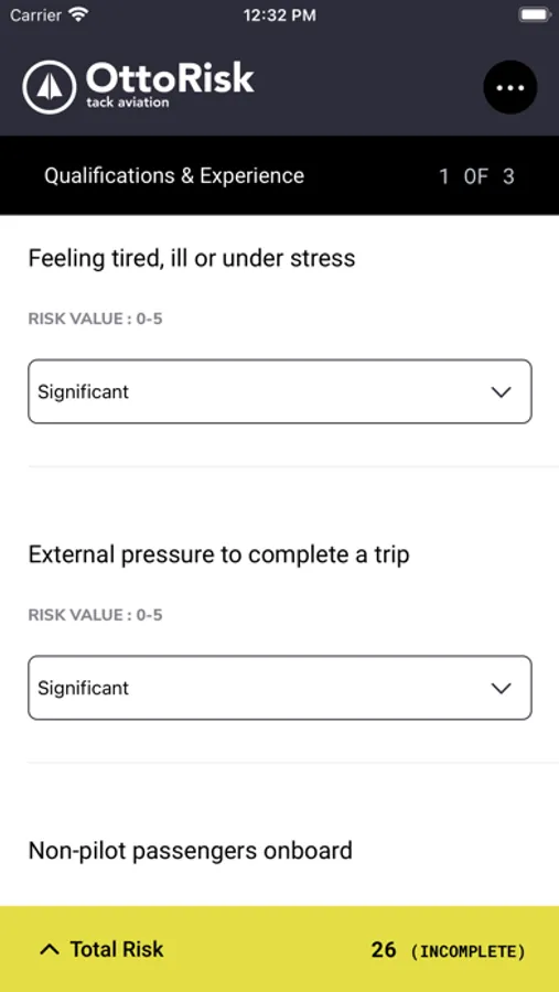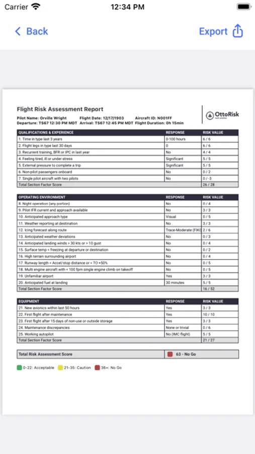 The OttoRisk flight risk assessment tool (FRAT) is a simple, elegant, and objective way to gauge flight risk. Supports a PDF report export to your favorite EFB or email.