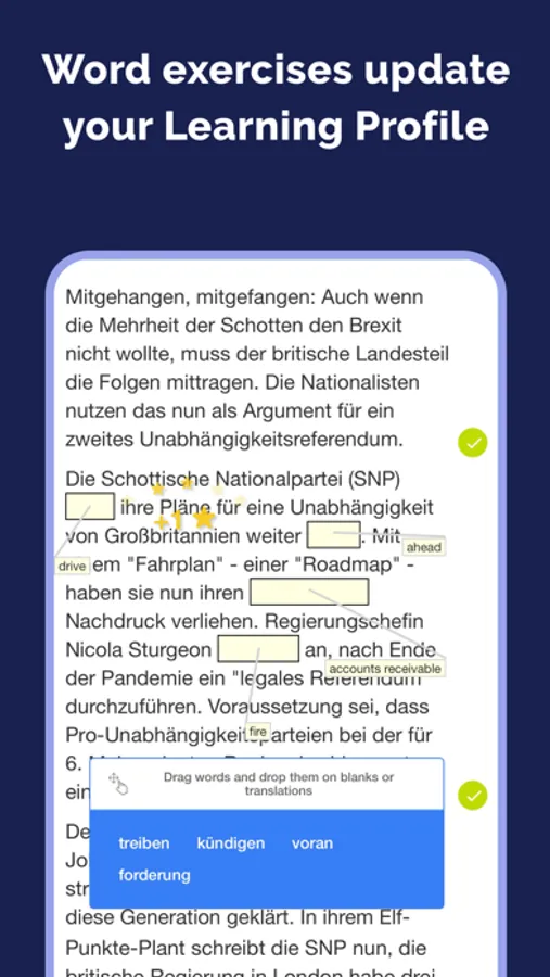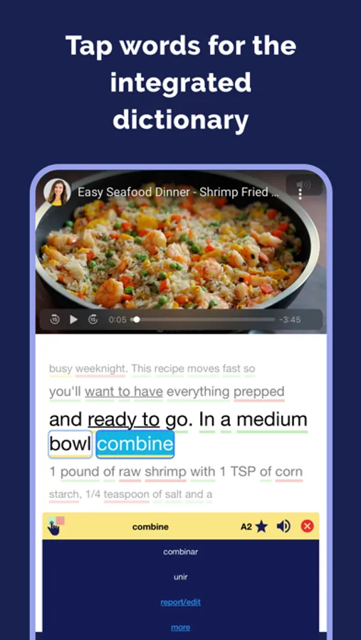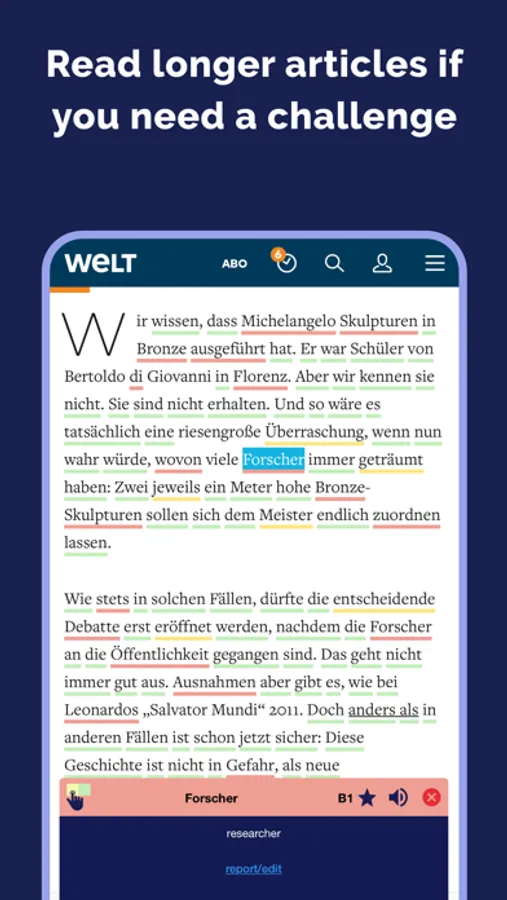 If you find a word you do not understand, tap on it for the integrated translation dictionary