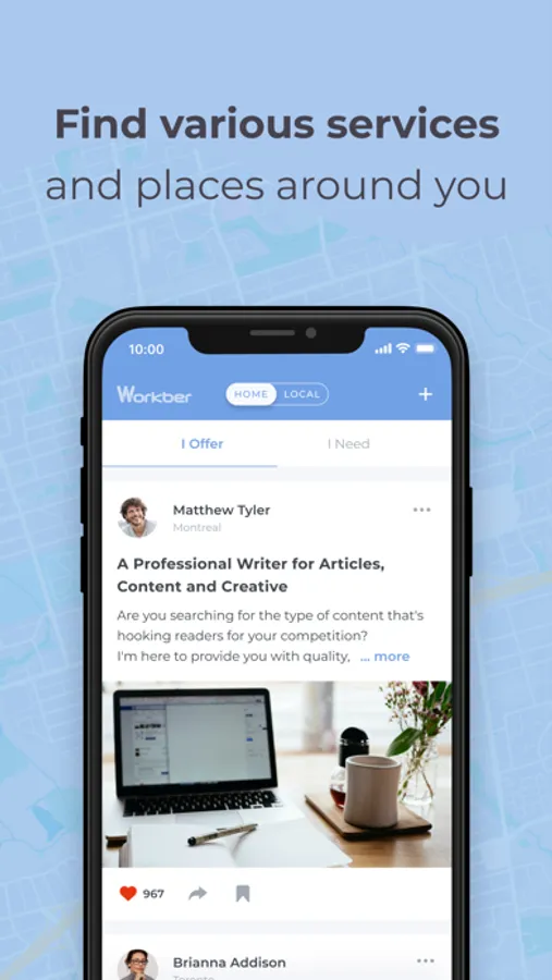 Download Workber and easily find and offer services wherever you go! Start searching or providing services around you!