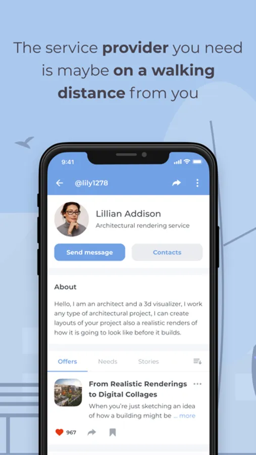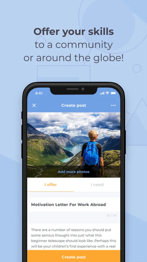 - Search by offers/needs - Understanding what you are looking for and having a few services to offer. Just type in what you’re looking for and you’ll explore all possible offers and requests around you.