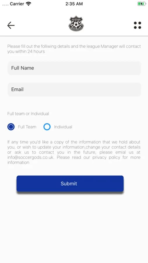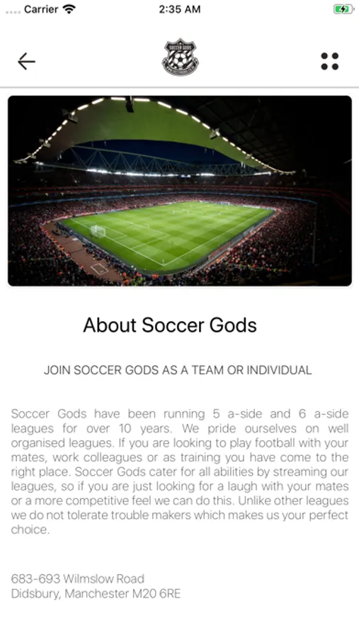 The Soccergods mobile app provides football players to register with FA affiliated leagues or join in as a complete team. This app also provides details of the leagues as well their upcoming matches, fixtures and points tables.