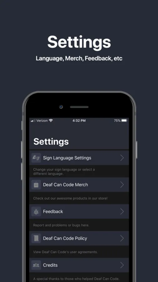 The Deaf Can Code is the first coding community which it's based on Sign Langauge for the deaf community. Deaf Can Code is beginning tutorials with Swift Programming, but there's will more features coming in the future! You can check to learn more about what's features on feedback in the Setting. Have a great enjoy coding!