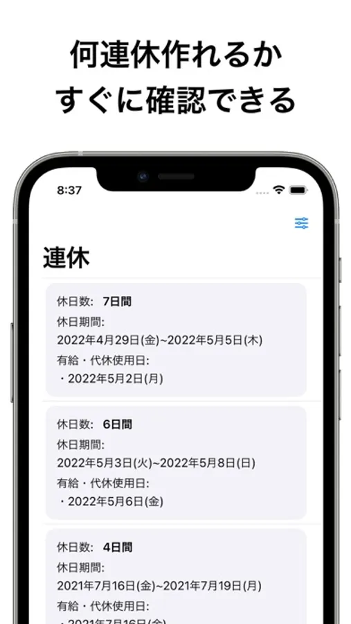 LongWeekend is iOS Application that supports checking long weekends when taking a vacation in Japan