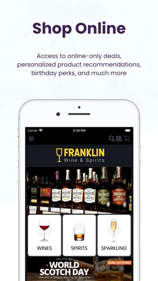 With the App you can browse for the wines & spirits available in the store, and also order a delivery or pickup.