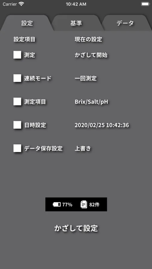By connecting to the piccolo, it is possible to set various measurement settings and review data within the app. Data is communicated between the piccolo and a mobile device via NFC.