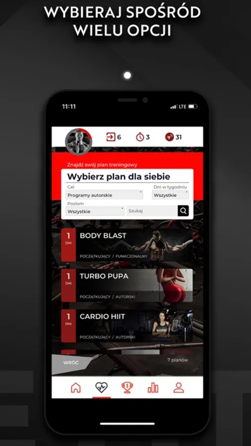 - Stwórz swój własny plan treningowy z gotowych ćwiczeń.