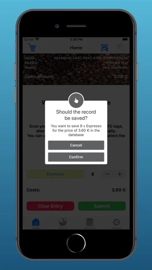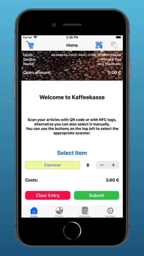 You are looking for a cash register for your coffee cup, then you have come to the right place. With the Kaffeekassen app, you can enter your coffee consumption in the database via barcode or NFC (cell phone must support NFC function). Via CloudKit you synchronize this with your other devices with the same Apple ID. The chart shows how your consumption changes per month. It is also possible to create QR barcodes yourself using the app. The bar codes can be shared using the IOS functions.