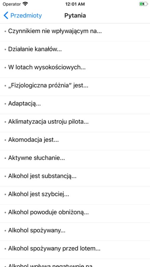 Aplikacja zawiera bazę pytań i odpowiedzi z przedmiotów: