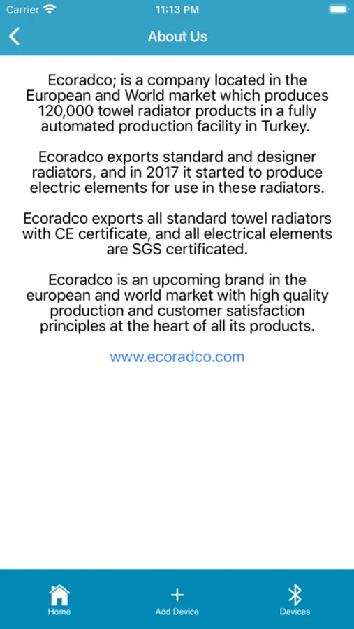 The Ecoradco Smart application controls the Ecoradco Sun Smart Device with bluetooth low energy (BLE). When the application is launched, the Sun Smart Device enters the application pairing mode. By adding a new device, the Ecoradco Sun Smart Device can be controlled with the Ecoradco Smart application.