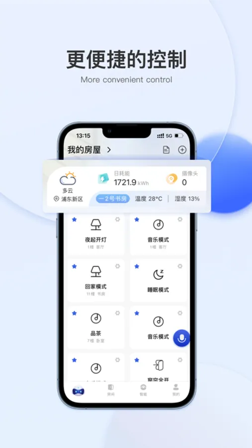 按照自己的喜好和需求,设置房屋场景,为您的家庭安防、智能生活娱乐提供保障;