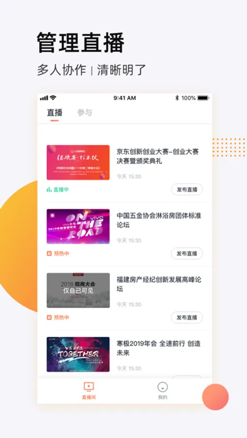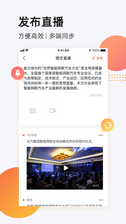 第一大特色:通过App可进行视频直播、照片直播、短视频直播、图文直播、VR全景直播、语音直播等的发布和管理,实现视频在线剪辑,快发短视频,直播间设置有评论、点赞、打赏、抽奖邀请卡片等互动营销功能,实现全方位、立体化的融合直播。第二大特色:平台还可实现弹幕/消息墙、3D签到、投票、3D抽奖、抢红包等现场大屏互动等功能,让现场气氛High起来。