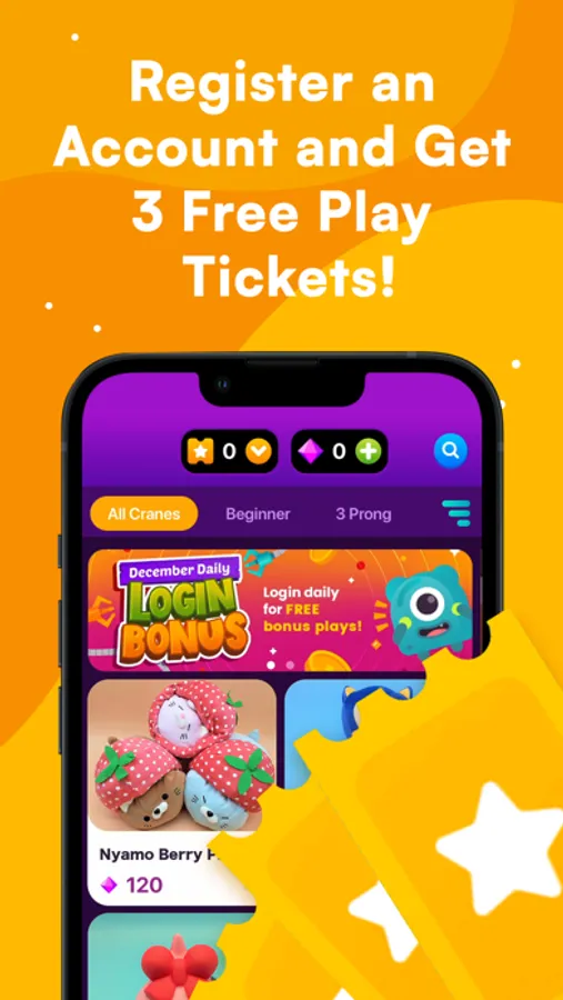 Daily logins to earn free tickets to play live crane games
