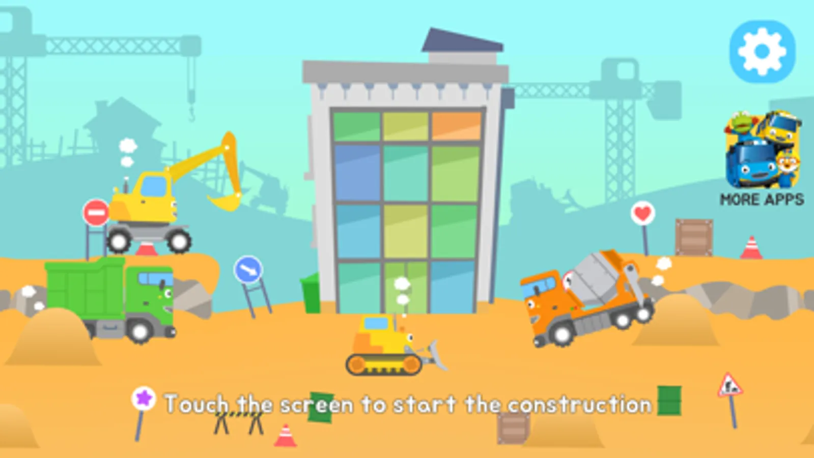 Experience building construction with TAYO The Strong Heavy Vehicles. Select a building you wish to construct and move heavy vehicle friends to transport materials. Complete missions by digging the ground and filling with cement, and your buildings will be completed in no time!