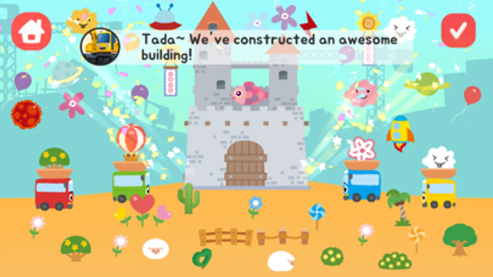 Once the building is completed, decorate it however you like! TAYO the Little Bus and his friends will bring nice decorations to help you. Create your own unique building with various stickers and decorations.
