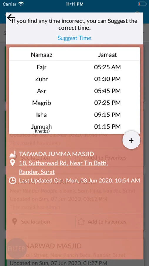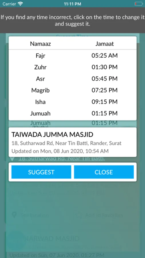 Namaaz times of nearby masjids now on your fingertips. Search for masjids near you or search by area. Add them to your favorites and correct time by suggestion feature within the app.