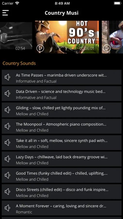 The many country music you'll find will always find plenty of choice and not get tired listening always the same, in this application you will find hundreds of artists and thousands of songs.