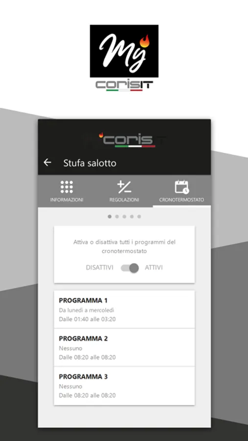 “My Corisit” è l’App sviluppata per gestire tramite smartphone o tablet le stufe dei marchi Lincar, Arce e Vulcania.