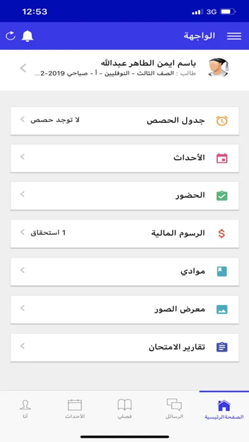 يرجى ملاحظة: إذا كان لديك العديد من الطلاب الذين يدرسون في مدرستنا وكان للسجلات المدرسية نفس رقم الهاتف النقال لجميع ابنائك، فيمكنك تبديل ملف تعريف الطالب في التطبيق من خلال النقر على اسم الطالب من قائمة شريط التمرير الأيسر ثم تبديل الملف الشخصي للطالب.