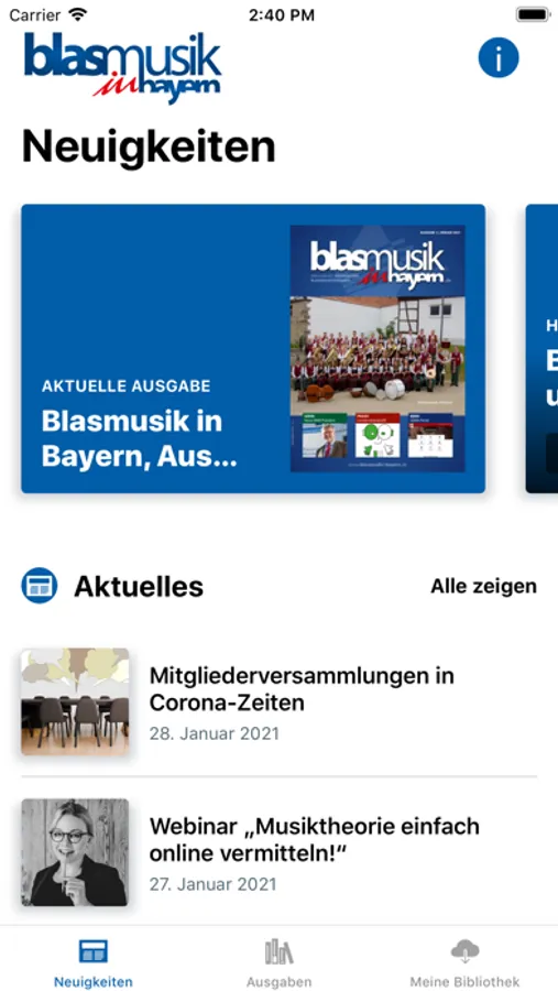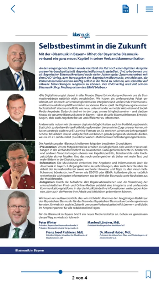 Die „Blasmusik in Bayern“ wird seit dem 1.1.2020 in der Nachfolge der „Bayerischen Blasmusik“ herausgegeben.