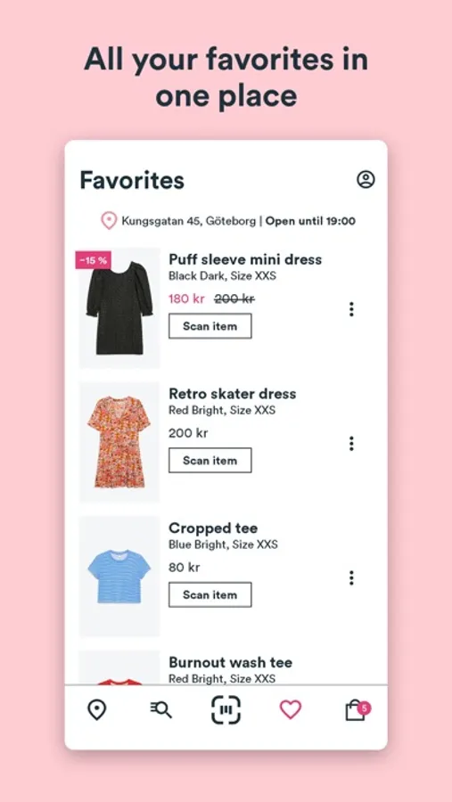 It’s simple, just scan the price tag on the item. Add it to your bag and enjoy the self-checkout. Find the self-checkout pillar, leave the hanger and grab a bag. But stay tuned, more stores are joining in soon!