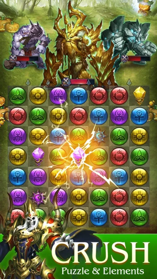 A mixture of puzzles and strategic gameplay! Defeat formidable enemies with match-3 combos and hero skills!