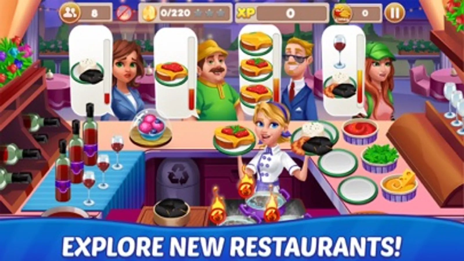 Open lots of restaurants in different cities. Dominate all the kitchen methods from all over the world with simple taps.