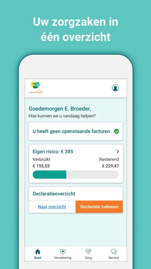 Gezonder leven is niet altijd makkelijk. Daarom helpen we u graag met handige services rondom gezondheid. En heeft u toch zorg nodig? Dan kunt u via onze app snel en gemakkelijk uw zorgzaken regelen. Voor uzelf of voor anderen op uw polis.