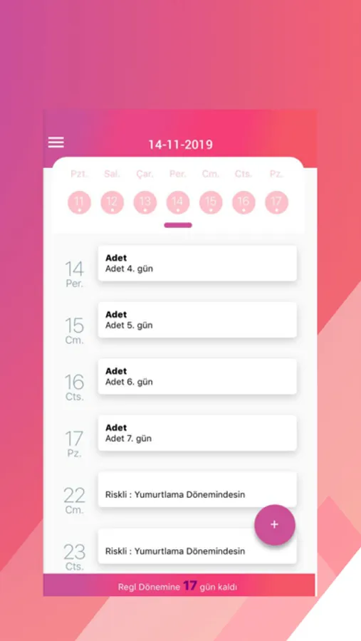 Takvime son adet tarihini kaydederek, adetine kaç gün kaldığını, ne zaman yumurtlama günlerin olduğunu, en riskli yumurtlama döneminin hangi gün olduğunu görebiliyor, İlaçlarını, tansiyonlarını veya farklı ölçümlerini günlerin içerisine not düşebiliyorsun.