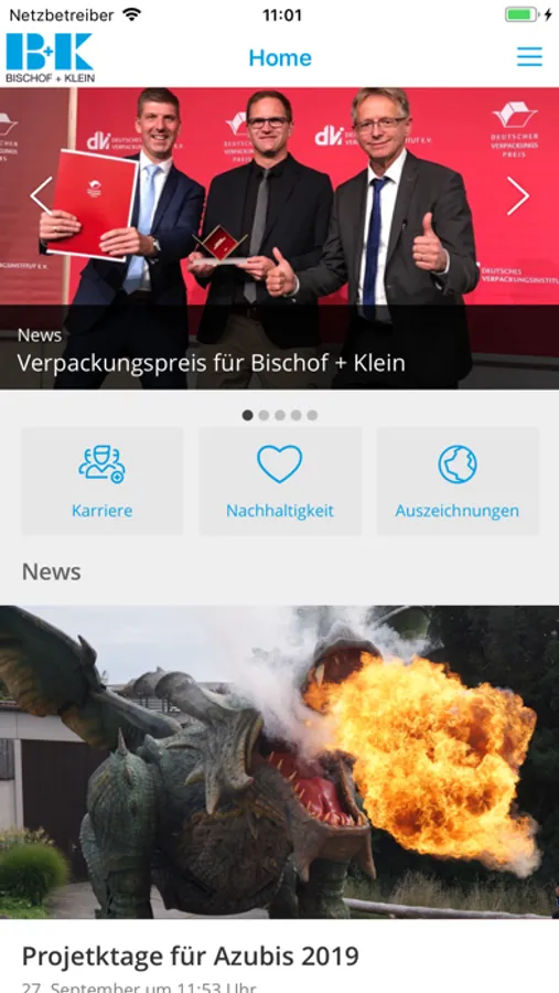 B+K to go bietet hierzu alle aktuellen Neuigkeiten für Mitarbeiter, Kunden und Interessierte. Neben Bewerbungs- und Karriereinformationen stehen für alle B+K-ler auch News zu aktuellen Projekten im Unternehmen und Infos vom Speiseplan über Mitfahrgelegenheiten bis zu den Schichtplänen bereit.