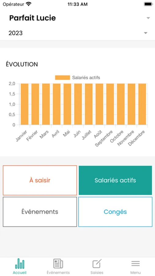 Un tableau de bord vous permet un suivi en un coup d'oeil de vos restes à saisir, vos salariés actifs, les événements ou congés de vos salariés.