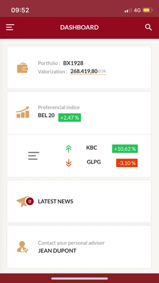 Let us know! Your usual point of contact with Leleux Associated Brokers, your personal adviser, will be your hub for all questions and remarks regarding our app. It’s your experience that enables us to keep improving MyLeleux.