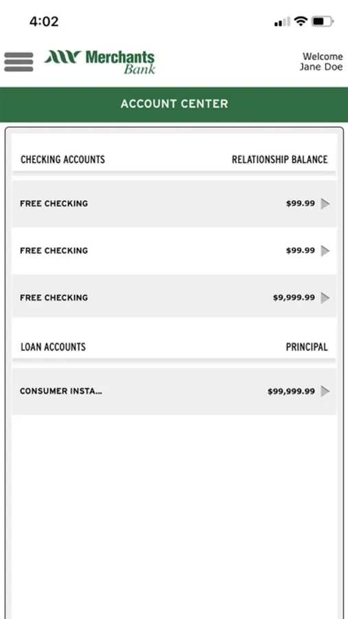 Download the app and use your Merchants Bank Commercial Mobile Banking user credentials to log in. If you do not have an account, call (866) 496-0522 to enroll.