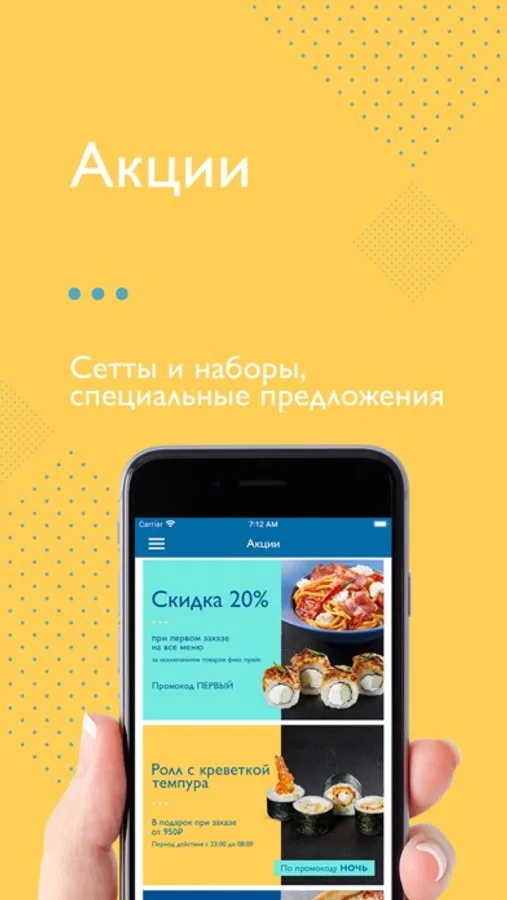 - Промонаборы и сеты: наборы пицц, роллов и др. блюд для больших и уютных компаний, празднований по специальным выгодным ценам.