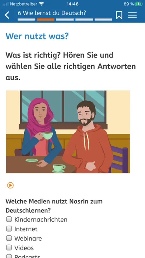 You will find our free German courses at levels A1, A2, B1 and B2 at https://vhs-lernportal.de/deutsch You can use them with any standard web browser, regardless of the device. The German courses build up your linguistic abilities systematically. Regular tests help you keep track of your progress.