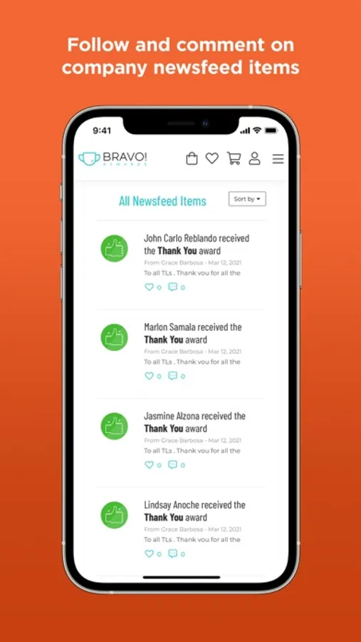 • stay up-to-date with a company newsfeed of awards, birthdays and more