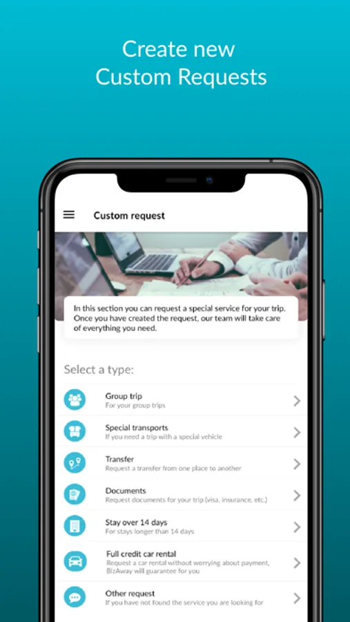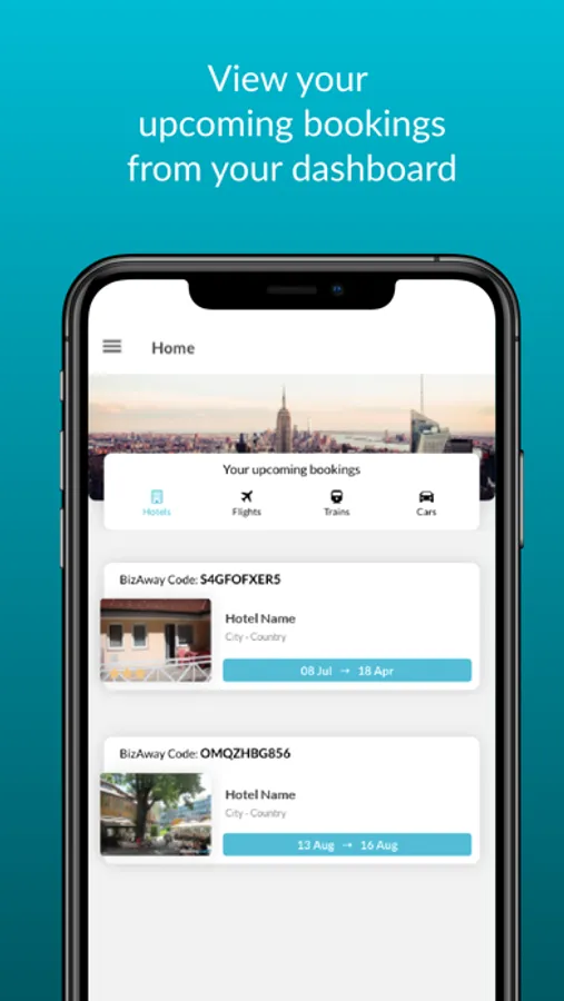 BizAway is a company that offers a product for booking and managing business trips. We operate on four verticals: flights, hotels, trains, and cars. The app only allows consultation of bookings received by the user upon login.