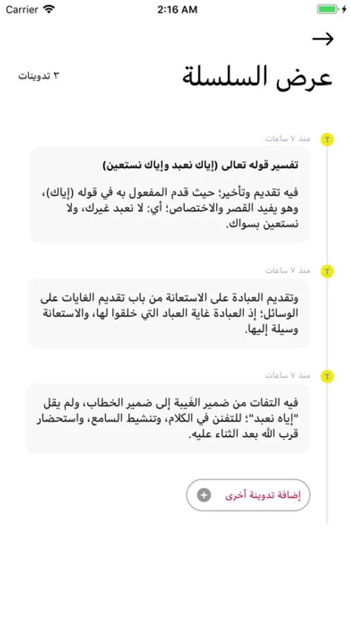 - إضافة التدوينة بنص مكتوب أو صورة أو تسجيل صوتي.