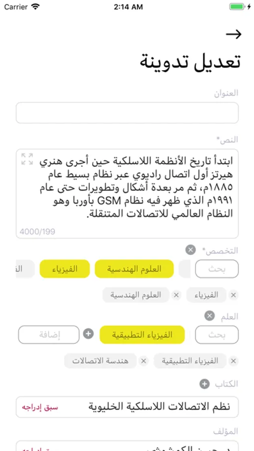 - عرض قائمة مميزة وشاملة لأغلب التخصصات والعلوم في عصرنا؛ ليسهل على المستخدم تصنيف تدوينته بسهولة.