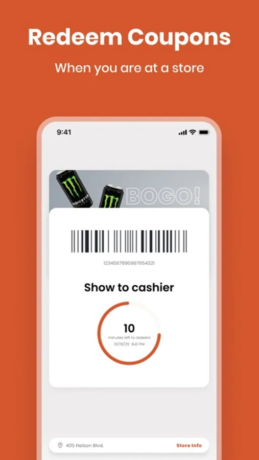 Simply tap the orange redeem button and show your phone at purchase to redeem your coupons.