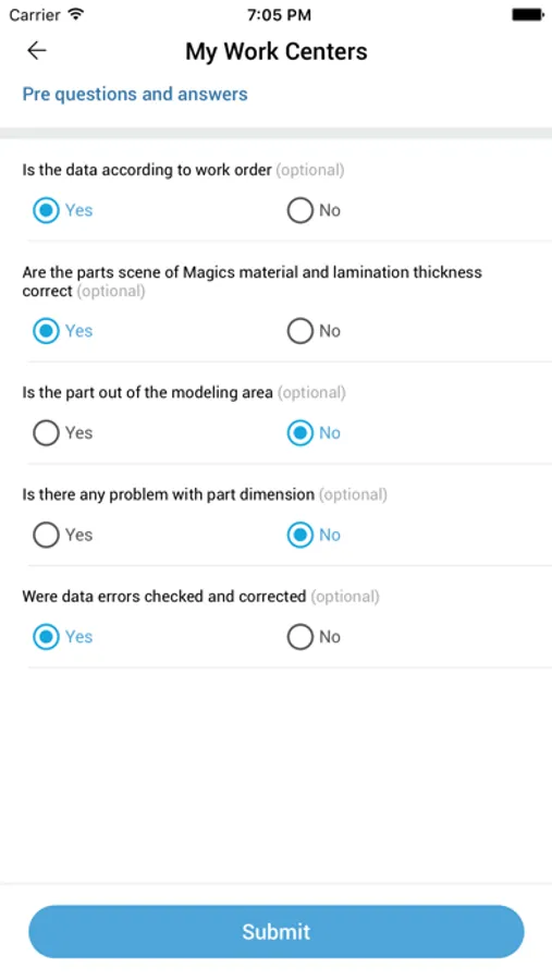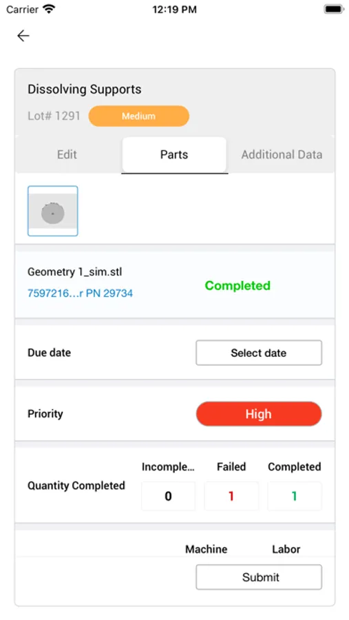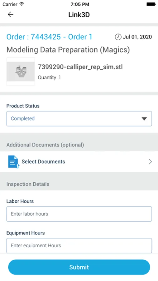 Link3D Additive MES & Workflow Software offers a mobile application to help manufacturers process orders and streamline production until order delivery. Link3d's Post Production Management and Quality Management System. (QMS) can answer all quality questionnaire data as they manage work instructions listed in job travellers/MOR's. QR code scanner enables shop-floor employees to automate data entry of material and consumable inventory, production parameters and other quality data needed for customer requirement compliance.