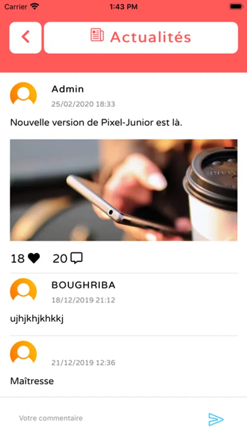 La nouvelle version de l'application Pixel-Junior contient la gestion des: