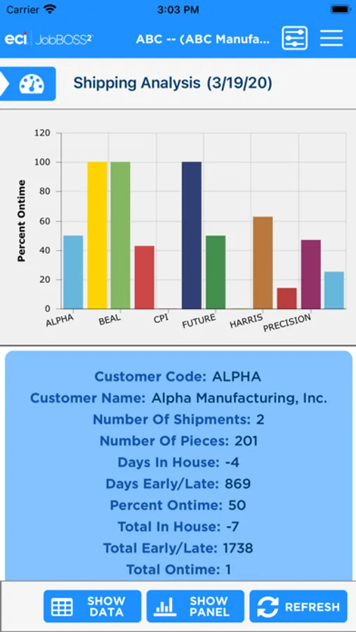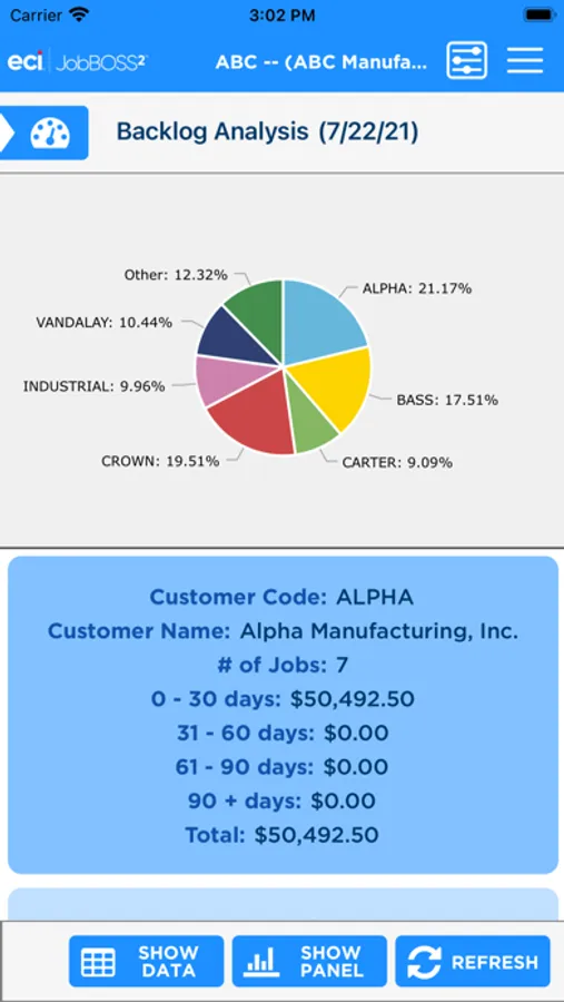 The Dashboards app gives an overall view of your financial information within the JobBOSS² System. This view only app allows for viewing of your current dashboards but you will have the flexibility to create new dashboards within JobBOSS² and add them to the app. The information can be displayed in graphs or data.