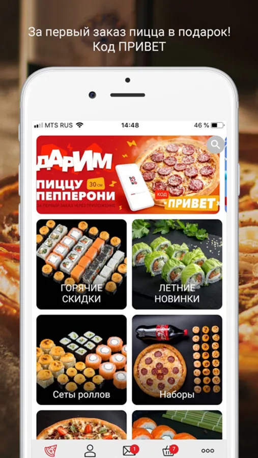 • Пицца ПЕПЕРРОНИ 30см в подарок за ПЕРВЫЙ заказ с мобильного приложения! Код ПРИВЕТ.
