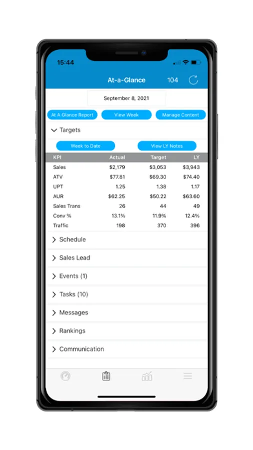 • Complete At-a-Glance functionality (including Task, Events, Rankings, Store Profile Reports, and Messaging);