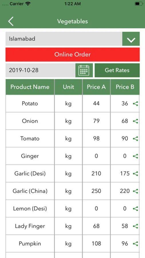 • User can get the rates w.r.t different administrative sectors of Federal Capital.